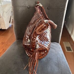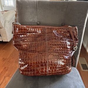 Brighton Cher Muse XLG Brown Patent Croc Print Shoulder Handbag