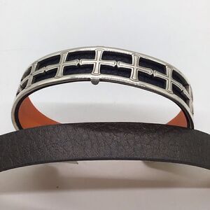 Brighton Christo Rome slim cuff bracelet. Silver toned with cutout cross design. Includes 2 reversible leather inserts.
