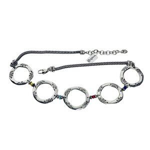 Embrace a touch of vintage charm with this Brighton necklace. Its intricate silver-tone design and colorful beads evoke a sense of timeless elegance. The robust wheat chain complements the chunky circular links for a bold statement, making it a captivating accessory for those who appreciate a classic aesthetic. It has the B for Brighton on the tip of the necklace