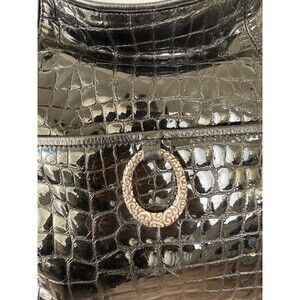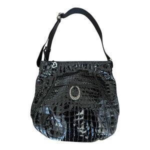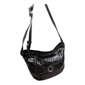 Brighton Classic Jane Black Patent Leather Croc Embossed Shoulder Bag