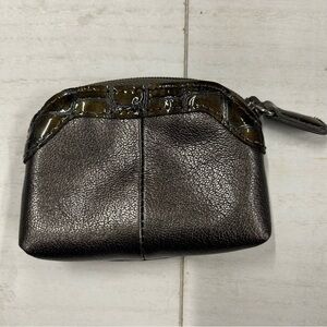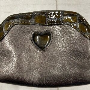 Brighton Coin Purse Brown Pebble Leather with Crocodile trim & heart accent EUC