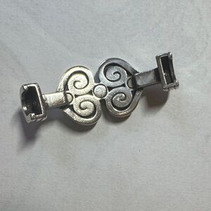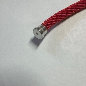 This interchangeable bracelet features a red and brown cord with a sophisticated silver interchangeable ornament. Perfect for adding a touch of class to any outfit. Cords are 6” and ornament is 1 3/4”.