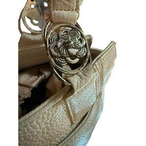 Brighton Cream Pebbled Leather Shoulder Tote Bag With Floral Metal Accents