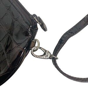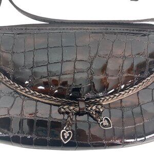 Brighton Croc Embossed Patent Leather Brown Cross Body Bag Converts To Clutch