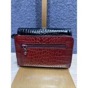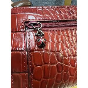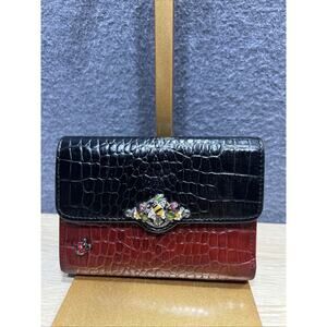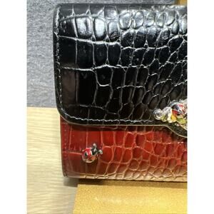 Brighton Croc Texture Trifold Wallet Ladybug Bee Black Brown Leather