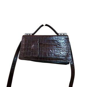 Brighton Crocodile Embossed Leather Crossbody Purse With Silver Accents & Adjust