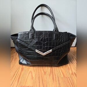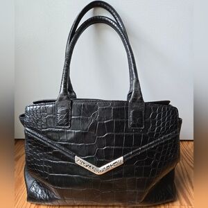 Brighton Crocodile-Embossed Sholder Bag Purse, Black With Silver