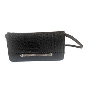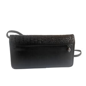Brighton Crossbody Clutch Wallet Purse Womens Black Woven Leather Organizer Bag