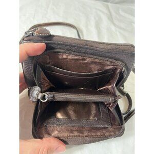Brighton Crossbody Organizer Brown Pebbled Leather Decorative Chain Hardware