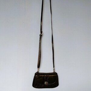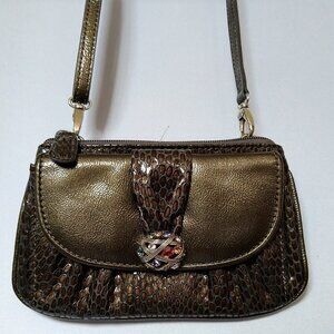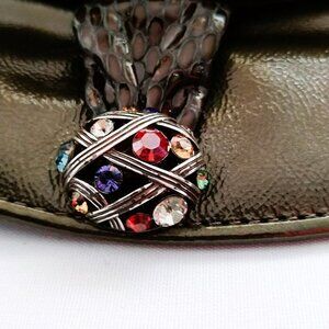 Brighton Crossbody Snakeskin Embossed Purse Bag Green Multi Color Jewels Leather
