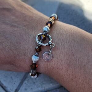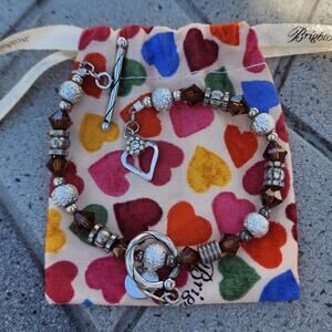 VTG: Stylish, stamped .925 sterling silver amber crystal beaded toggle bracelet with textured round spacers / heart toggle closure / multicolored heart dust pouch by Brighton. In excellent condition with intact beads/crystals. **Disclosure: under magnification there are minor scuff & discoloration marks. Please see pictures. Approx. Length: 7" Approx. Weight: 12g