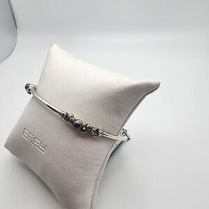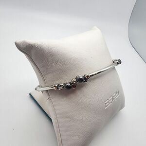Brighton Crystal Palace silver tone bangle bracelet with clear and brown crystals.