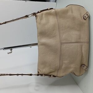 Brighton- D632927 - Karina -Vintage Fold Over Flap Pebbled Leather Messenger/ Shoulder Bag -Beige.
