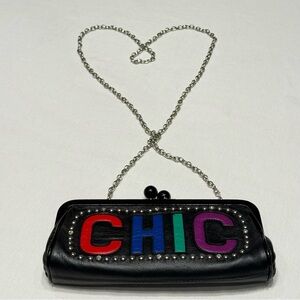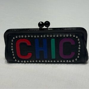 Brighton DIVA CHIC Black Multi Leather Clutch Bag Small Purse Studs Bling Chain