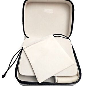 Measures about 6”x 4”x 2” (see photos showing measurements) — perfect gift for yourself or someone special — holds rings, earrings, necklaces, bracelets — detachable jewelry pouch perfect to slip a piece of jewelry in as a gift — it’s just too cute!