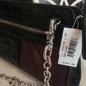 Gorgeous chic leather with patent leather trim. Front zippered compartment with two zips inside. Brand new with tag and dust cover. Priced $165