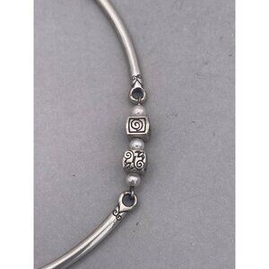 Brighton Detailed Beads with Pearl Long Curved Link Necklace Silver Tone 17 in