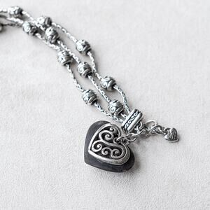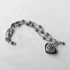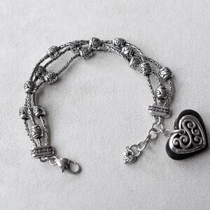 Brighton Diva Bracelet 3 Strand Silver Plated Black Heart Charm Retired WEAR