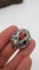 Beautiful Brighton multicolor crystal ring. The silver tone band has the classic scrollwork associated with Brighton and does not take a magnet. The Brighton logo is inside the band behind the dome. Preloved. The top red crystal has a callout (chipped) - please see the photos and video. Size 5 3/4.