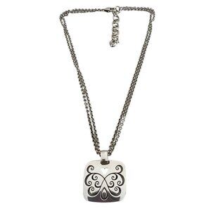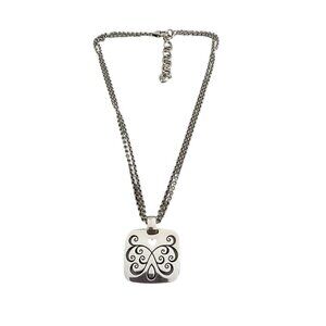 Brighton Double strand Silver Tone Square Filigree Pendant Necklace Multichain