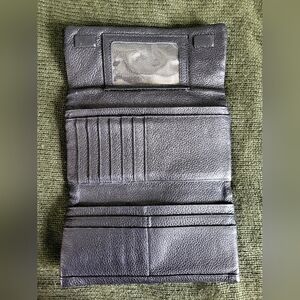 This elegant black leather wallet is perfect for any occasion. Its sleek design and high-quality material make it a must-have accessory.