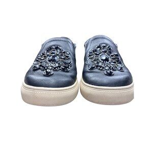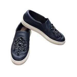 Brighton Embellished Slip-On Sneakers Size 9 Black Leather
