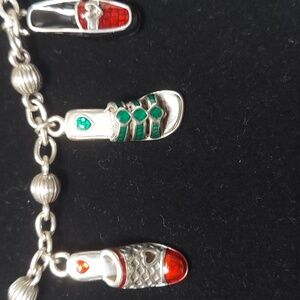 This is a must have for the shoe girl in your life. Each shoe is a different color and style. Wear as a bracelet or attach to a chain for a one of a kind necklace. Excellent condition. Never worn. Just downsizing collections.
