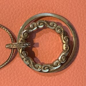 Brighton FONTAINE SPIN Crystal Silver Double Circle Pendant Necklace