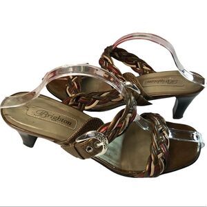 Brighton Figi Sandals Braided Metallic Tones Leather Silver Buckles Size 10