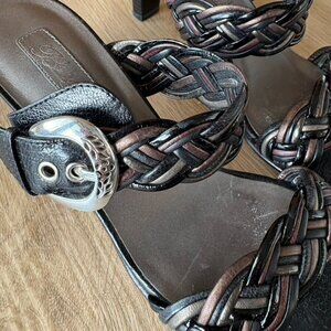 Brighton Fiji Braided Strap Sandals Silver Buckle Black Bronze Size 6