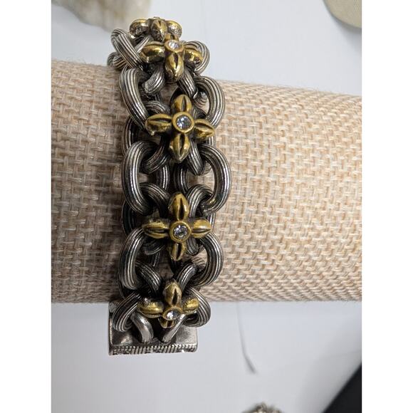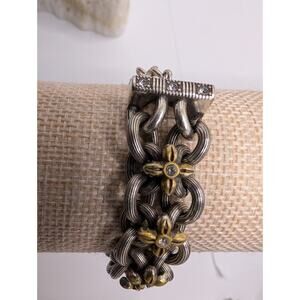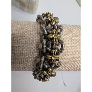 Brighton Flower Link Bracelet 7.5in Two Tone Gold Silver Crystal nice!