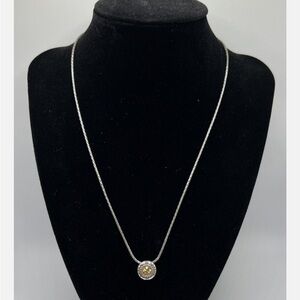 Embrace the sophisticated allure of the Brighton necklace, showcasing a harmonious blend of silver and gold tones. This exquisite piece features a delicately linked chain and a beautifully detailed medallion, exuding a vintage-inspired charm.