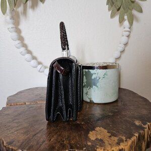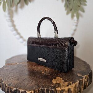 Brighton Gina Organizer Mini Crossbody Bag – Black Croc-Embossed Leather NWT