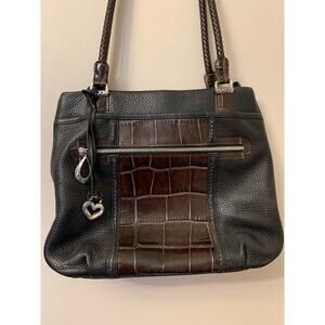Brighton Glorietta Tassel Black and Brown Leather Two Strap Shoulder Bag