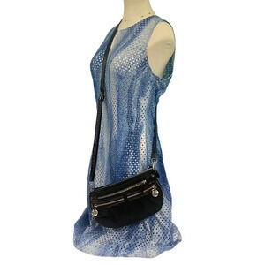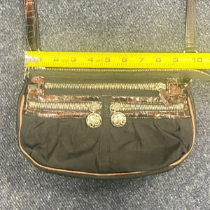 Brighton Go Go Black Nylon & Brown Croc Patent Leather Crossbody Purse Bag GUC