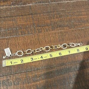 This exquisite Brighton bracelet features a harmonious blend of gold and silver tones, creating a versatile piece that complements any outfit. The chunky chain design showcases substantial interlocked links, offering both durability and a classic, timeless appeal. Its polished finish adds a modern touch, making it a standout accessory for any occasion.