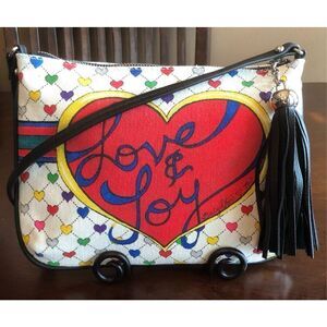 Designed by Tom Clancy, this Brighton Love & Joy Tasseled Limited Edition Crossbody Pouch is super clean and like new. She’s 10.5” x 7.5”, with a strap drop of 25”. Made of canvas and really vibrant and colorful. She’s 79% cotton and 30% polyester, so she can be machine washed (in cold) and tumbled to dry. Zippered top entry with black exaggerated tassel on a silver-tone ball. The pristine white sateen lining is speckled with black polkadots. It has an interior zippered compartment. MSRP $60. This bag is super clean, just adorable and like new. ♥️