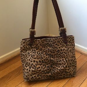 Cheetah print hand bag. Adjustable straps. Only damage is on the bottom at the corners as pictured.