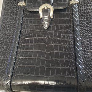 This Brighton bag is Very gently used and very handsome in black crock print leather. This bag is a perfect size ( 12'X10 1/2' ) for all your items as well, as your tablet.