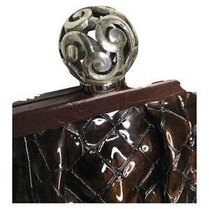 Gorgeous shades of brown patent leather with embossed snakeskin pattern. Beautiful Brighton silver accents