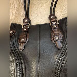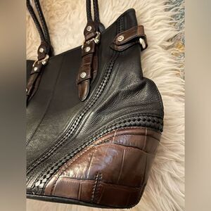 Brighton Handbag Embossed Leather Black & Brown