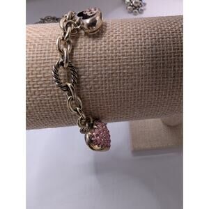 Brighton Heart Charm Bracelet 7.5in Pink Crystal Silver Tone Chain Adjustable