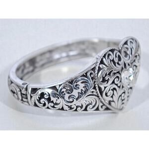Brighton Heart Filigree Cuff Bracelet Hinged Clamper Magnetic Retired 7"