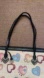 Chic and stylish women's Brighton bag featuring a charming heart pattern. The cream background is complemented by black handles, making it a versatile accessory for any outfit. Pre/owned. two inside zippers and zip close