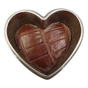 This Brighton heart-shaped jewelry box is a true treasure. It is heavy weight metal featuring intricate floral open filigree on the top lid, with 2 layers that are lined with embossed leather. The 2 bottom pieces feature the Brighton signature on the bottom. Perfect for you to stash your secret treasures!