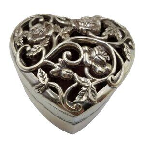 Brighton Heart Shaped Jewelry Trinket Box With Intricate Floral Design HTF