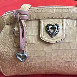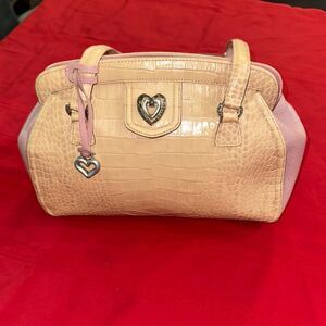 Brighton Heart Charm Beige and Pink Crocodile-Embossed Handbag