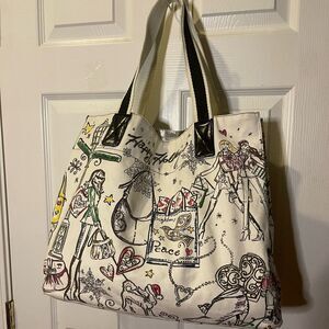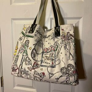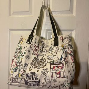 Brighton Holiday City Tote &Cosmetic Pouch cotton Canvas beige multi color print. pre owned in good used condition the inner traps have some yellowish stains see all pictures any questions please message. B4