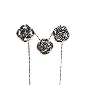 This elegant Brighton silver-tone necklace and earring set is designed with intricate knot motifs, accentuated by sparkling crystals. The necklace, measuring 17 inches, features a secure lobster clasp, ensuring a comfortable fit. This set is an exquisite addition to any jewelry collection, providing a touch of sophistication.