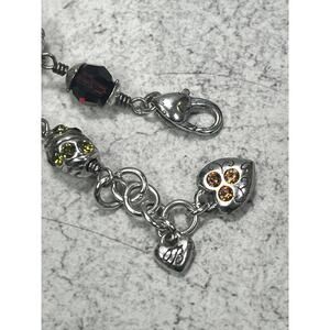 Beautiful Brighton signed jewel fantasy beaded bracelet features a mix of silvertone rhinestone and faceted glass beads in earthy brown, green and amber colors. Beautiful way to add some eyecatching sparkle to any outfit!